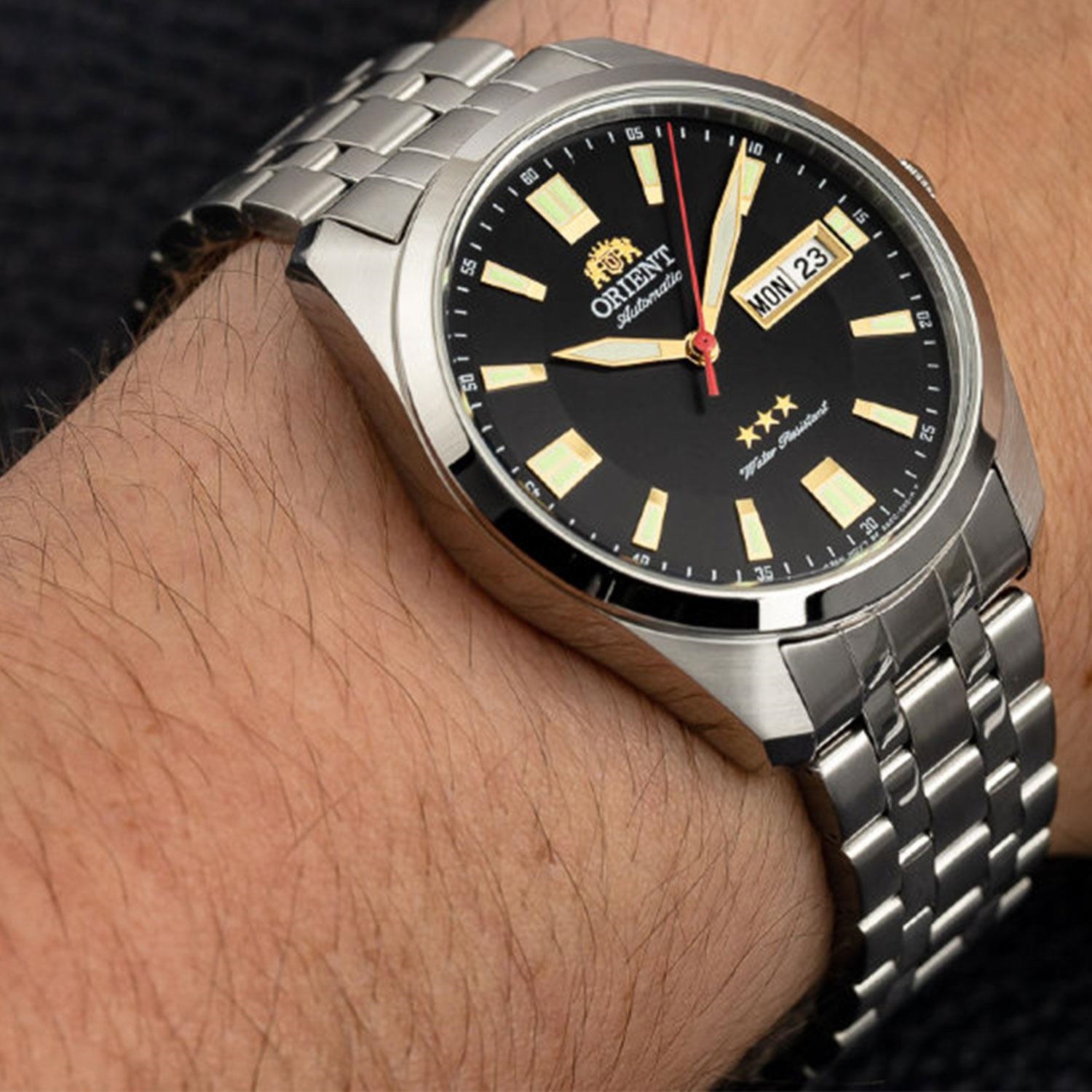 ساعت مردانه مدل RA-AB0017B19B از برند اورینت ترکیبی از طراحی کلاسیک و کارایی روزمره است که برای آقایان شیکپوش و اهل دقت ساخته شده است. این ساعت با قاب و بند استیل ضد زنگ، ظاهری مقاوم و در عین حال جذاب دارد و صفحه مشکی آن با عقربهها و نشانگرهای شبتاب، جلوهای حرفهای و کاربردی ایجاد میکند.