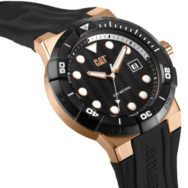 ساعت کاترپیلار اسپرت مناسب برای تیپهای اسپرت. متریال قاب استیل ضدزنگ ابکاری شده به همراه بزل مدرج روی قاب،جلوه ای زیبا به این ساعت اسپرت بخشیده است