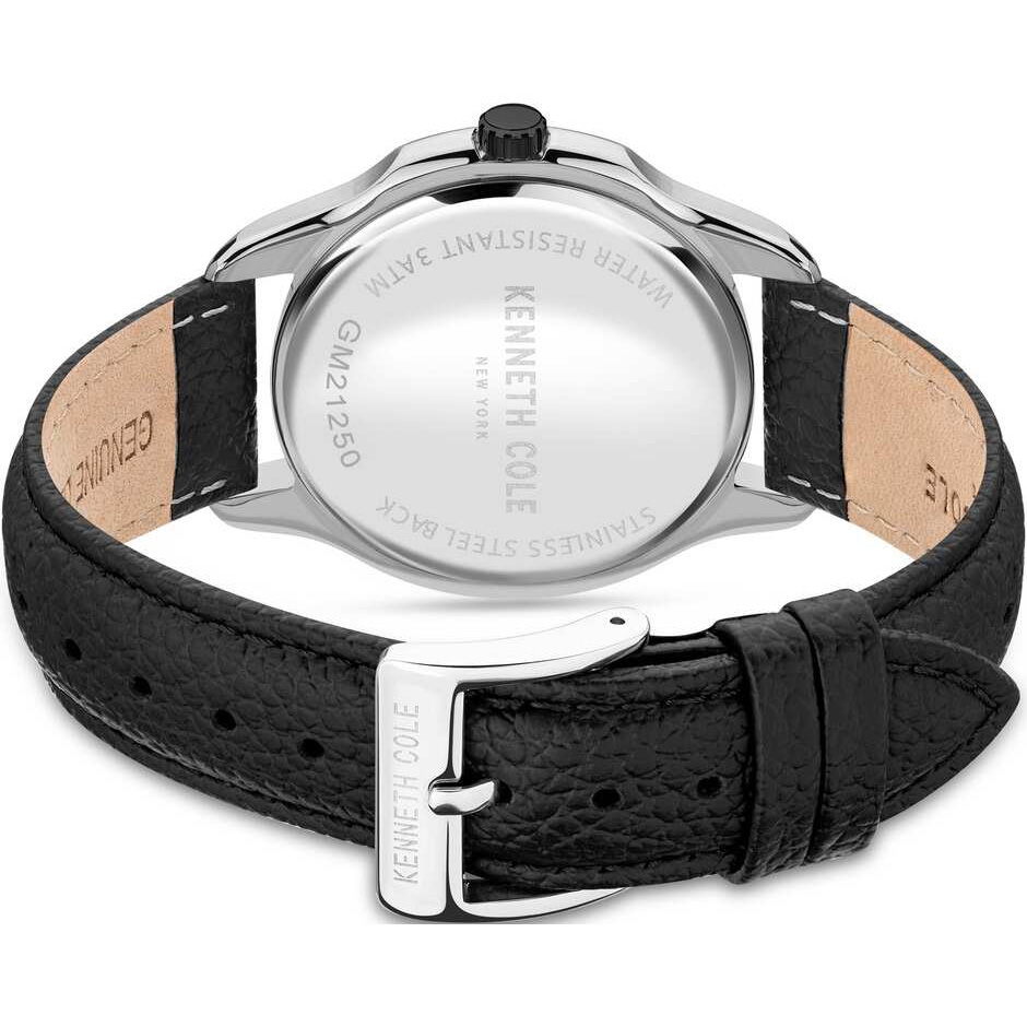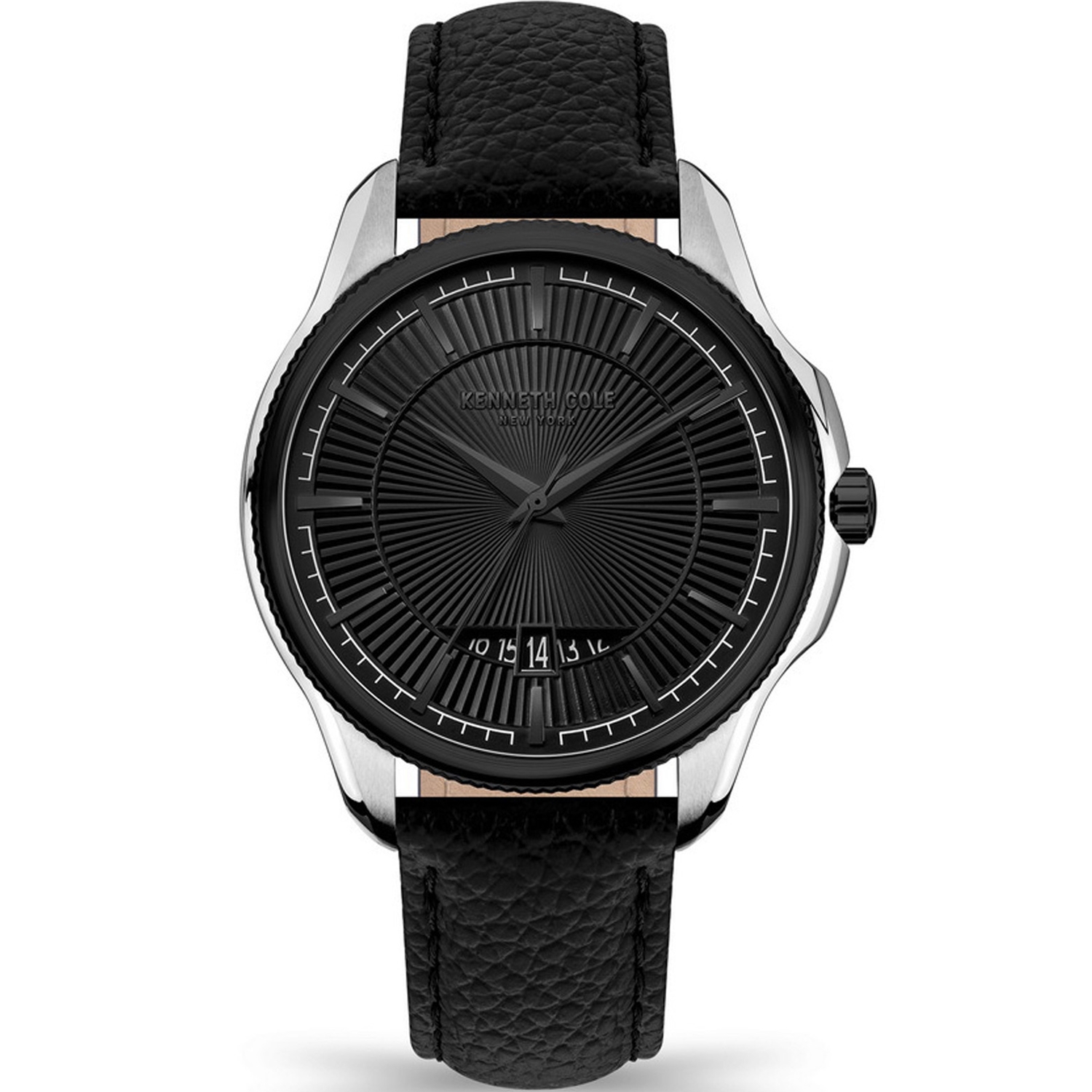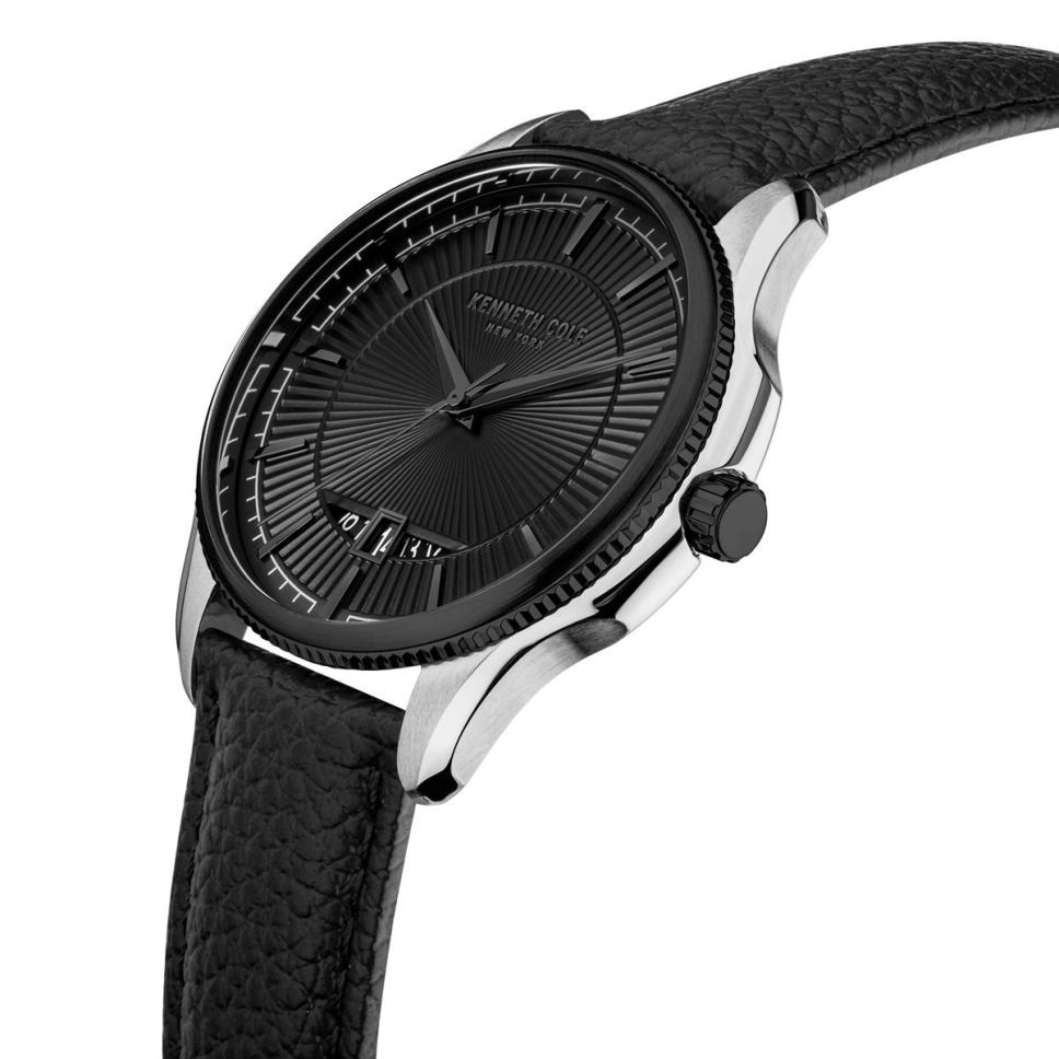 ساعت مچی مردانه کنت کول KENNETH COLE با طراحی کلاسیک بند چرم مشکی با قاب گرد استیل مشکی و صفحه مشکی با قابلیت داشتن تقویم وموتور ژاپنی و انرژی باتری و مقاوم در برابر آب تا عمق 30 متر به همراه دو سال گارانتی بین المللی
