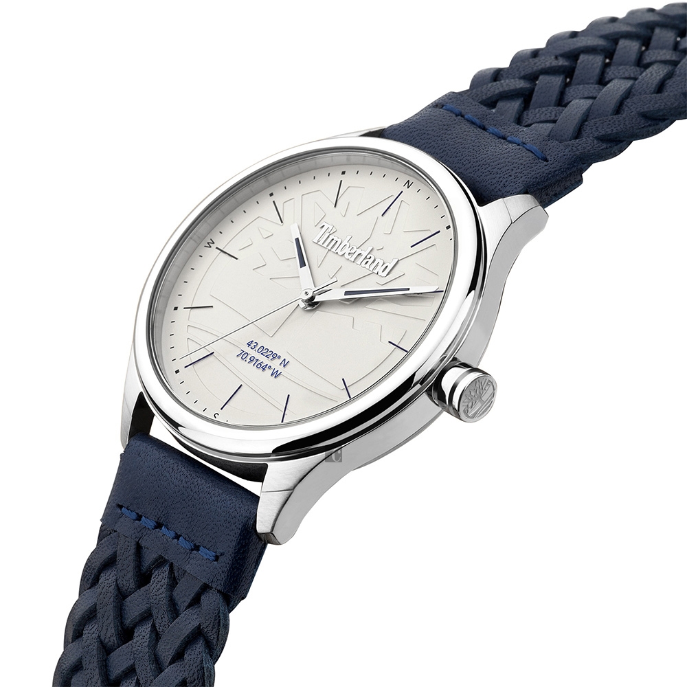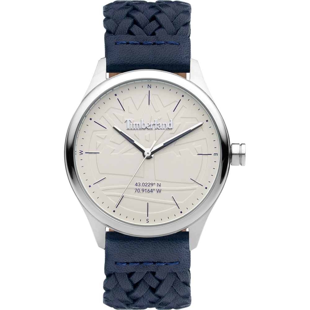 ساعت مچی مردانهTIMBERLAND با طراحی اسپرت بند چرمی سرمه ای وقاب استیل وصفحه گرد سفیدبا قابلیت داشتن شب نما وموتورژاپنی و انرژی باتری ومقاومت دربابر اب تا عمق 50متر با دوسال گارانتی بین المللی