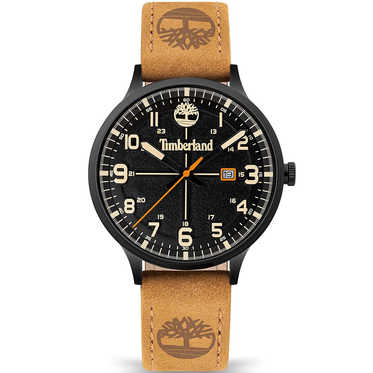 ساعت مچی مردانهTIMBERLAND با طراحی اسپرت بند چرمی قهوه ای وقاب فلزی مشکی وصفحه گرد مشکی با قابلیت داشتن تقویم ,شب نما وموتورژاپنی و انرژی باتری ومقاومت دربابر اب تا عمق 30متر با دوسال گارانتی بین المللی