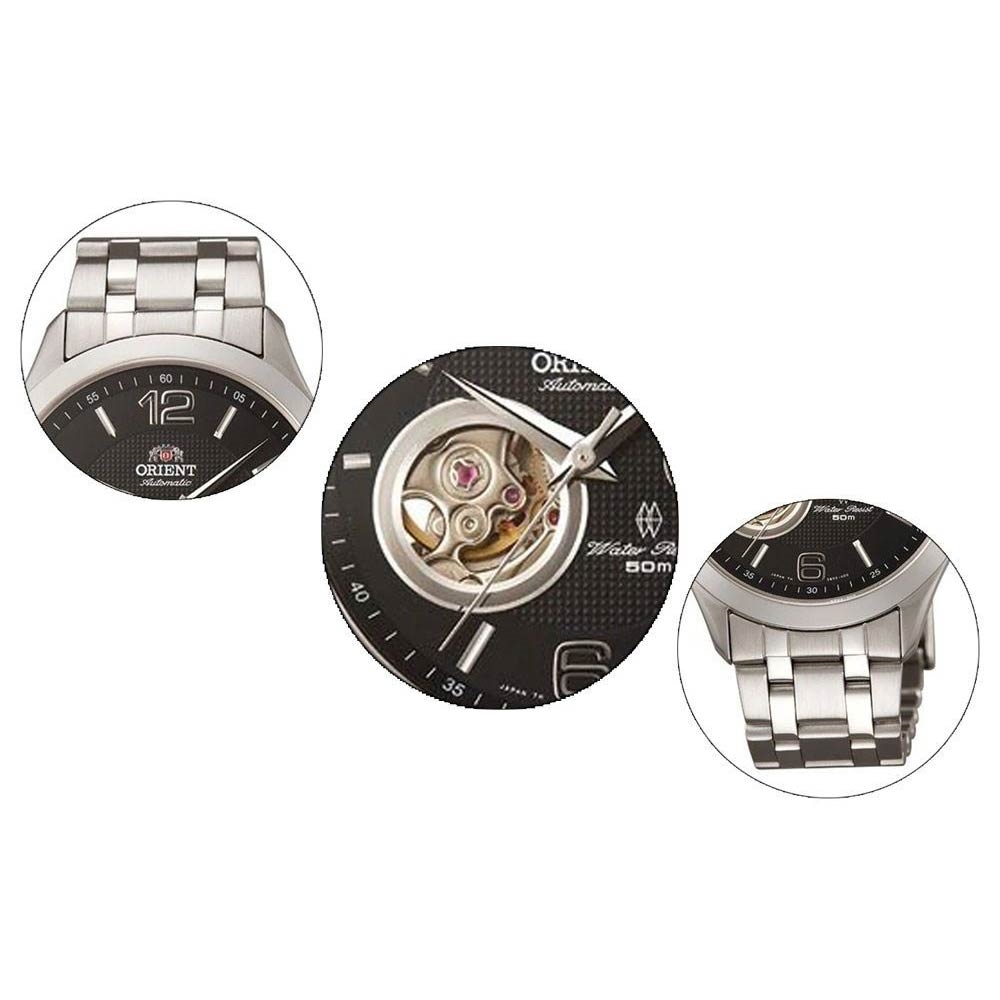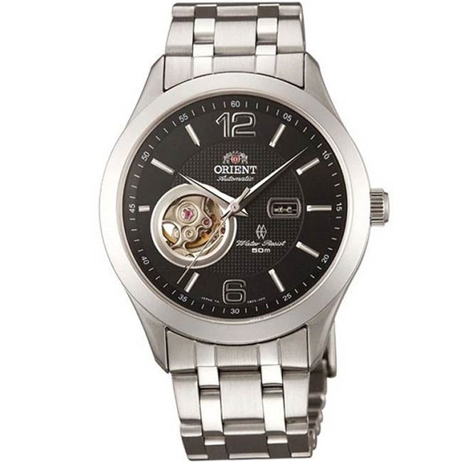 ساعت مچی مردانه اورینت ORIENT با طراحی کلاسیک بند استیل و قاب گرد استیل وصفحه مشکی قلب باز وشیشه ضد خش با قابلیت داشتن شب نما وموتور اتوماتیک ژاپنی با انرژی مکانیکی ومقاومت در برابراب تا عمق 50 متر به همراه دو سال گارانتی بین المللی