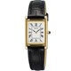 قاب مستطیلی از استیل ضد زنگ با روکش طلایی در کنار ساعت بند چرمی، ترکیبی هماهنگ و چشمنواز ایجاد کرده است. صفحه سفید با عقربههای مشکی و اعداد رومی ظریف، جلوهای از اصالت و ظرافت کلاسیک را به نمایش میگذارد.