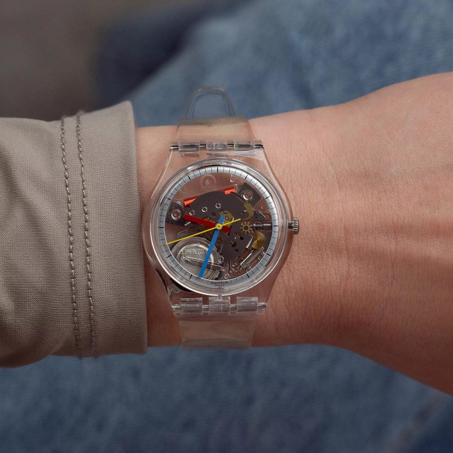 ✨ این ساعت شفاف Swatch با ترکیب رنگهای زنده و طراحی دوستدار محیط زیست، انتخابی مدرن و خاص برای استفاده روزمره است.
